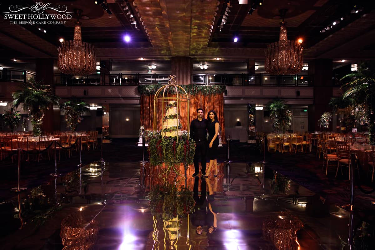 Sweet Hollywood was delighted to grace The Great Room @ Grosvenor House London – Park Lane for a stunning Sikh Wedding Reception. Our clients were looking for a unique wedding cake to compliment their tropical garden / rainforest theme and really wanted a statement wedding cake that would make an impact within The Great Room.